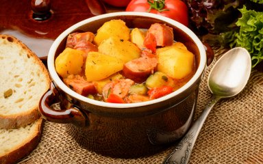 Перець, цибуля, морква, помідори, часник, консервовані квасоля, кукурудза і горошок разом із ковбасками — це ситна страва, сповнена багатими ароматами, сильними смаками і корисними речовинами.