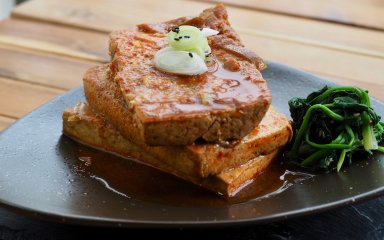 Дубу-джорим — це тофу, обсмажений на сковороді і тушкований в пікантно-пряному соусі. У результаті виходить соковита, гострувата, хрустка зовні та м’яка всередині страва.