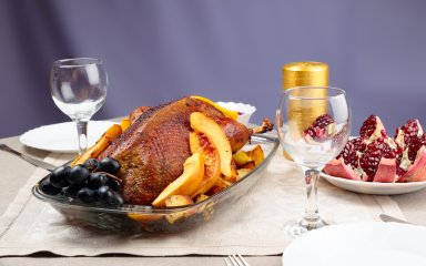 На запікання піде близько години. Проткніть качку ножем. Якщо з проколу потекла прозора рідина, м’ясо готове.