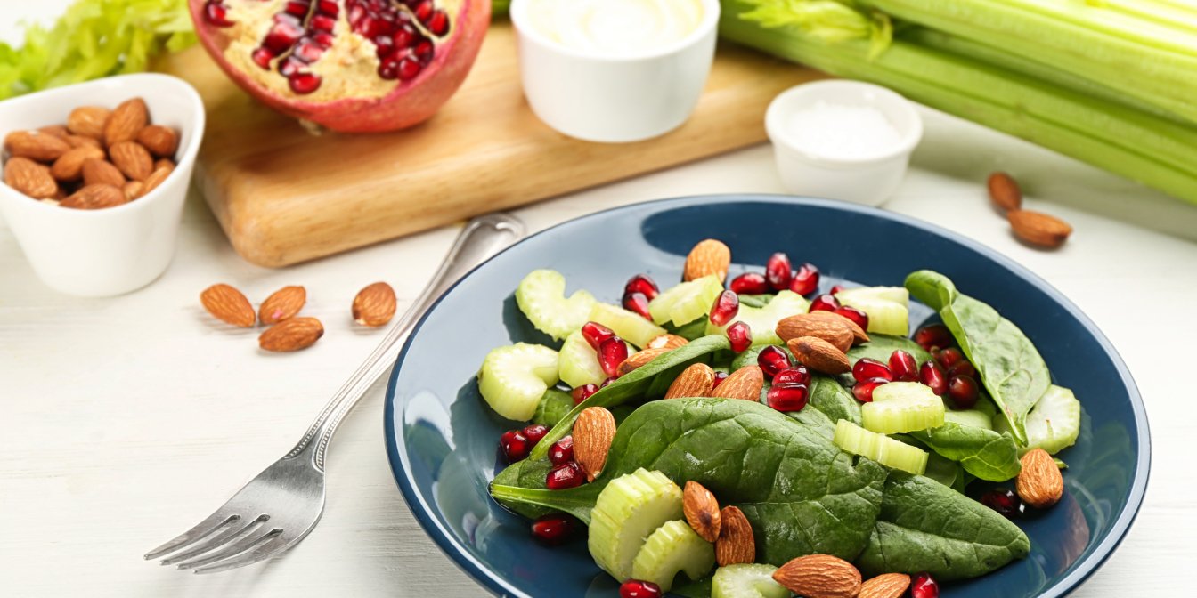 Салат із селерою і гранатом особливо цінний через вплив на здоровʼя, адже всі складові дуже корисні! Посудіть самі: як і всі овочі, селера містить велику кількість клітковини, що позитивно впливає на функціонування шлунково-кишкового тракту. Також стебла селери мають заспокійливий ефект, уповільнюють процеси старіння організму, а про корисні властивості цієї рослини для чоловіків ходять легенди.