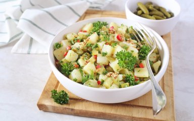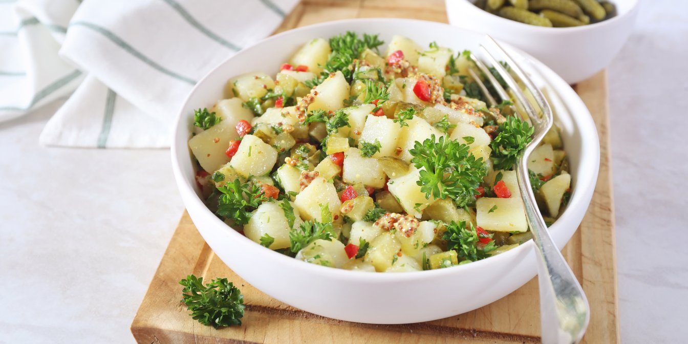 Середньостатистичний німець споживає колосальні 70 кг картоплі на рік. І частенько у вигляді салату, наприклад, як цей — із солоними огірками. Радимо спробувати німецький картопляний салат, щоб зрозуміти причину такої любові.