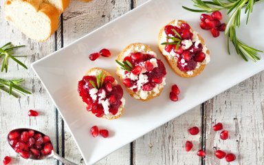 Так от, сир і гранат ідеально підійдуть і для свята, і для миттєвої закуски на вечір — готувати швидко, а їсти весело та смачно. Додайте трохи меду та винного оцту, а ще зеленої цибулі чи будь-якої зелені за смаком — страва готова для вживання з напоями, наприклад, гранатовим шпрітцером з розмарином, або ж із гарнірами.