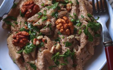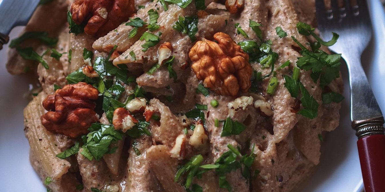 Найкраще він смакуватиме з пастою. Готується на основі волоських горіхів максимально швидко.