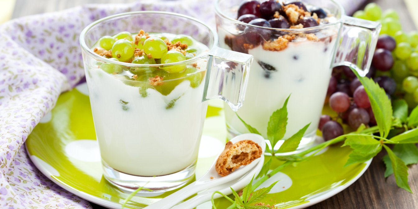 Доведіть свої смакові рецептори до екстазу разом із цим вершково-йогуртовим десертом з виноградом. А щоб ця смакота скоріше опинилася на столі, використовуйте виноград без кісточок.