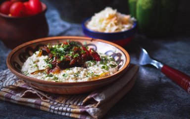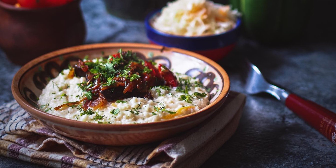 Колись без неї не відбувалося жодне весілля. Традиційно готується із квашеної капусти та пшона із засмажкою з овочів сала чи м'яса. Ми ж приготуємо капусту засипану з білими грибами.