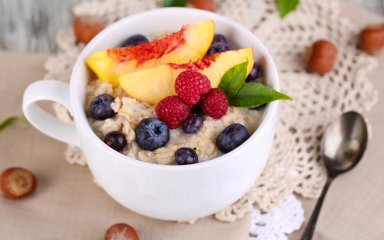 Вівсянка для багатьох є стандартним сніданком. У різних варіаціях її досить легко готувати: запікати, варити, запарювати, заливати на ніч. Якщо ви поспішаєте — рецепт вівсянки у чашці за 5 хвилин у мікрохвильовій пічці стане в пригоді.