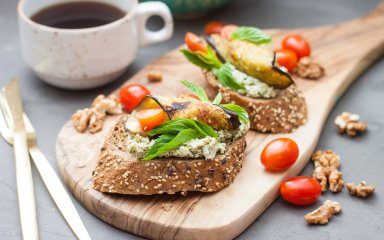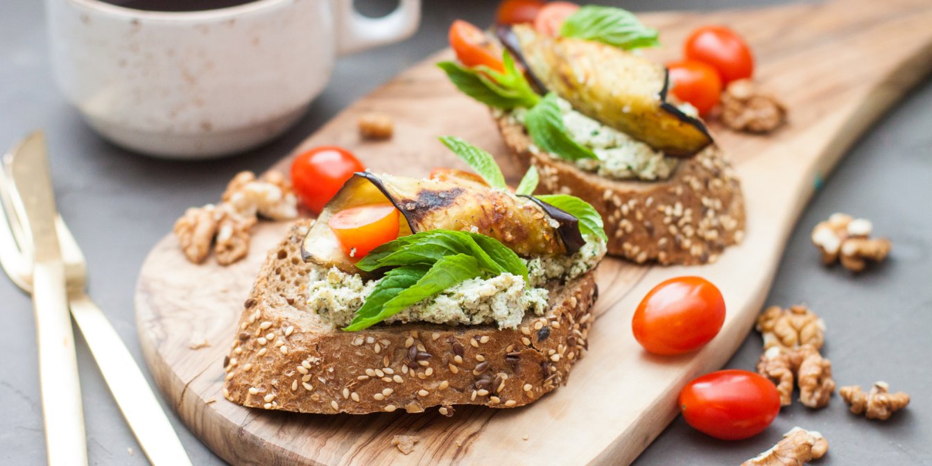 Цей варіант брускет ми готуємо з цільнозернового хліба, баклажану, камамберу і соусу гуакамоле. Ця проста і елегантна закуска підходить на всі випадки життя.