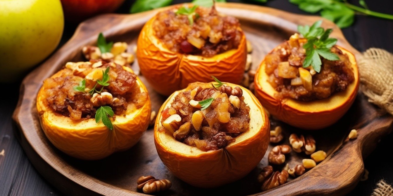 Випікайте 30-40 хвилин, поки яблука не стануть м’якими. Дістаньте й подавайте гарячими з гарніром. Смачного!