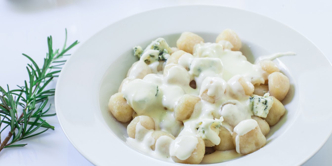Вершкова і смачна страва з готових магазинних ньокі, заправлених соусом з горгонзоли, молока, тертого пармезану і вершкового масла — це ідеально, коли у вас на все про все є пів години. Не забудьте останній штрих — приправити ньокі з горгонзолою мускатним горіхом і шавлією для додаткового аромату.