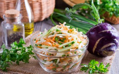 Примітка: за цим рецептом можна приготувати салат з білої ріпи або кольрабі. Додавайте до салату свіжу моркву або огірок.