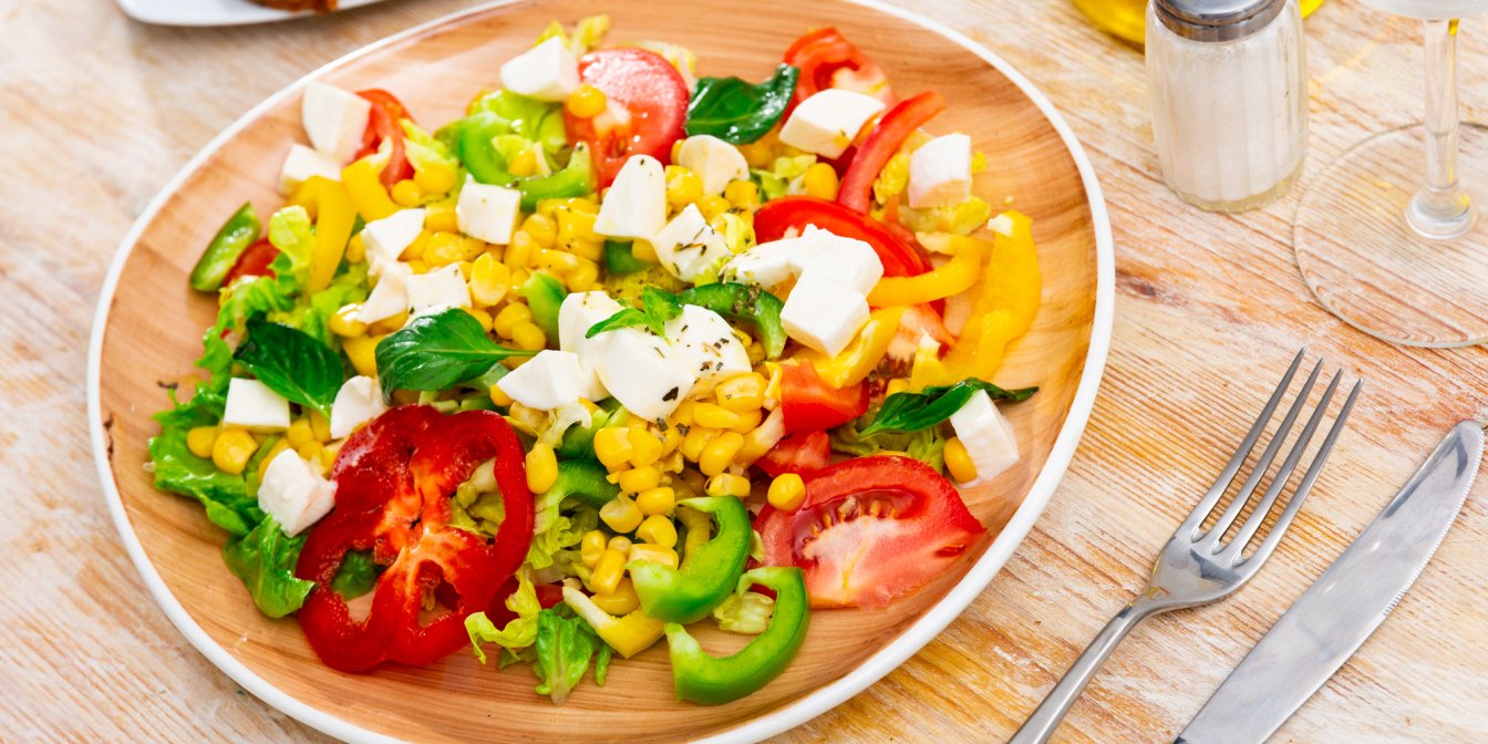 Овочі, кукурудза й сир — це ідеальний набір для салату! Досить пікантний, він особливо сподобається любителям індійської кухні.