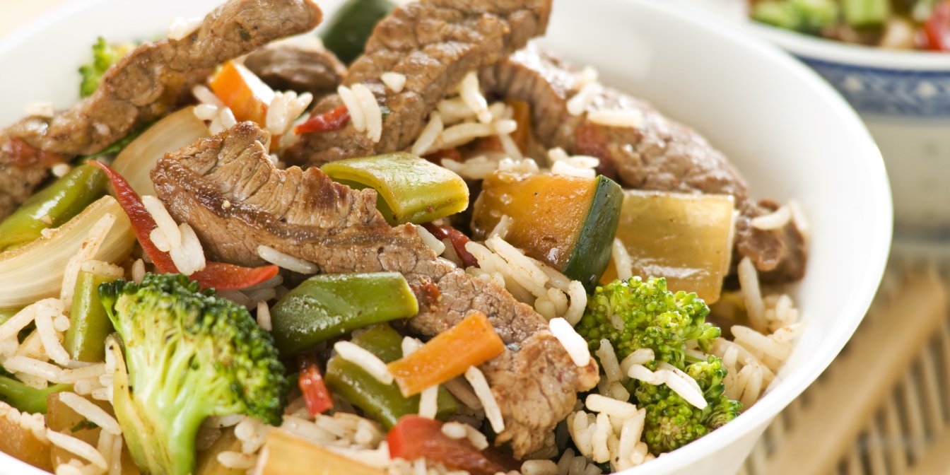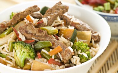 Яловичина з рисом і овочами в аерогрилі — повноцінна і смачна страва, що містить вуглеводи, клітковину, вітаміни й білки.