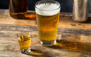 Бурбон налийте в чарку. Пиво налийте у високу склянку.
