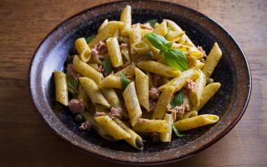 Пенне із соусом песто й консервованим тунцем — страва з багатьма чеснотами: її просто приготувати, вона потребує мінімум інгредієнтів, а на столі вже за 20 хвилин!