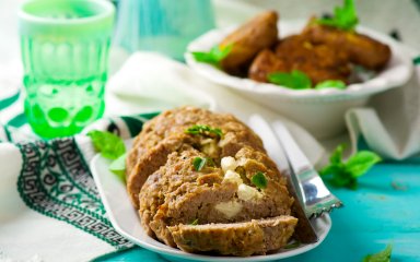 Вологими руками сформуйте масу, схожу на буханець хліба, і покладіть у форму для випічки. Поставте в розігріту духовку і випікайте при 200 градусах приблизно 40 хвилин. Після запікання злийте жир. Смачного!