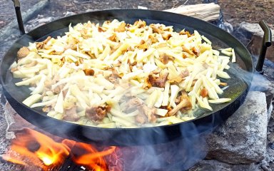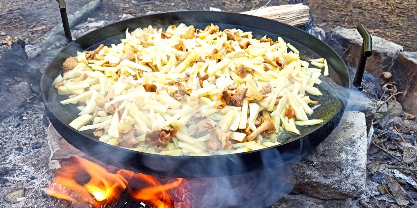 Щоб приготувати цю просту страву, вам не знадобиться багато продуктів і часу — ароматна картопля з грибами на відкритому багатті буде готова приблизно через 40 хвилин.