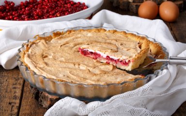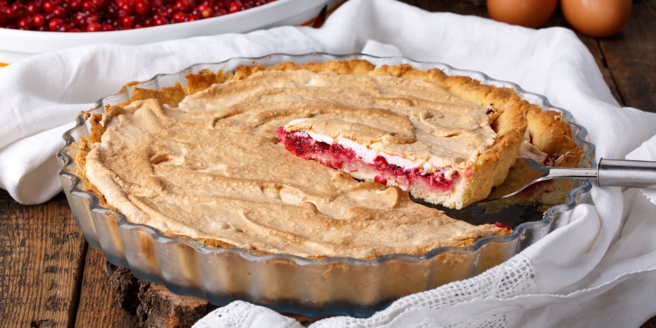 Розсипчаста основа з пісочного тіста, начинка з перебитої з цукром журавлини і дуже м’яке безе з хрусткою верхівкою — хіба можна встояти перед такою насолодою? Спробуйте цей пиріг із журавлиною і безе!