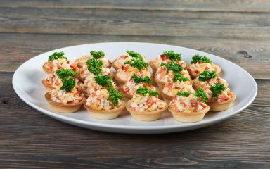 Закусочні тарталетки з яйцями і креветками