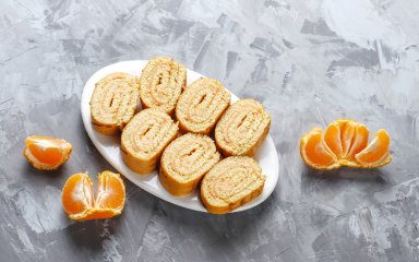 Він смачний, соковитий, з цитрусовим і молочно-шоколадним смаком. Цей «лінивий» рулет можна приготувати навіть тоді, коли гості вже в дорозі. Пригостіть друзів чи малечу — усім сподобається такий десерт.