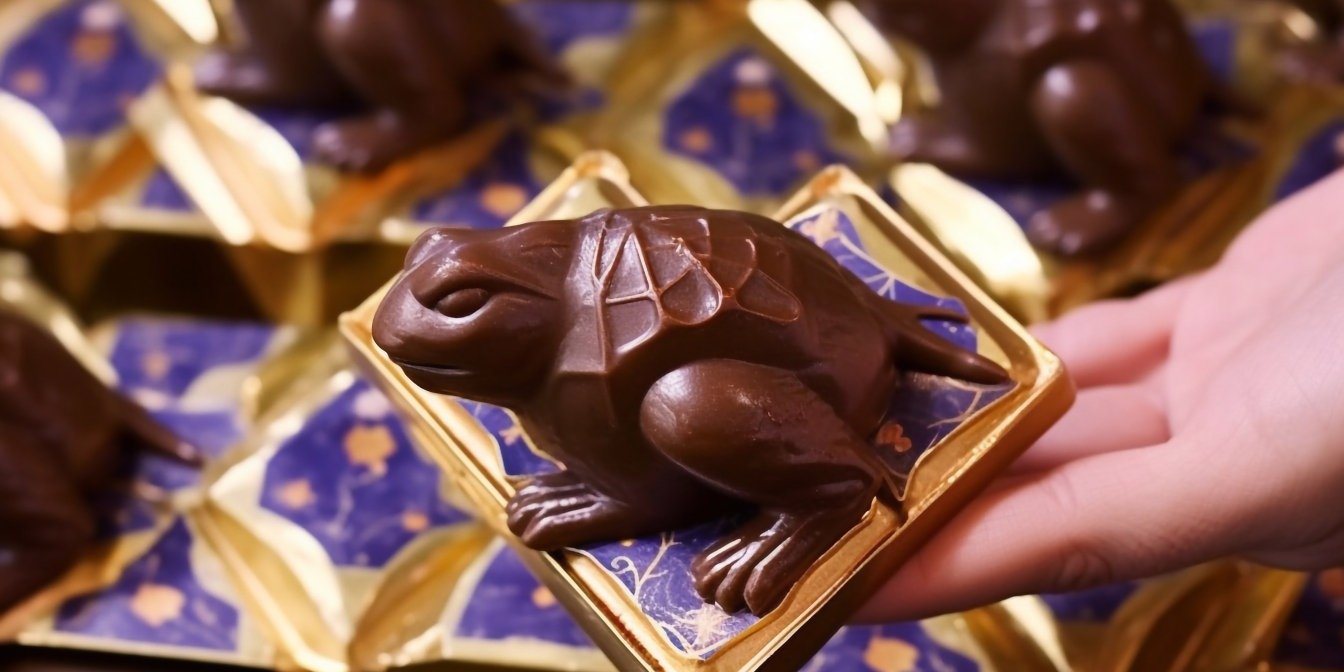 Шоколадні жаби із «Солодкого королівства» запам’яталися всім шанувальникам Поттеріани. Ці мармеладні жаби в шоколадній глазурі не заквакають і втечуть зі столу, але будьте пильними — їх розметуть за секунду.