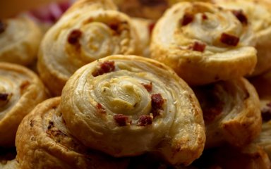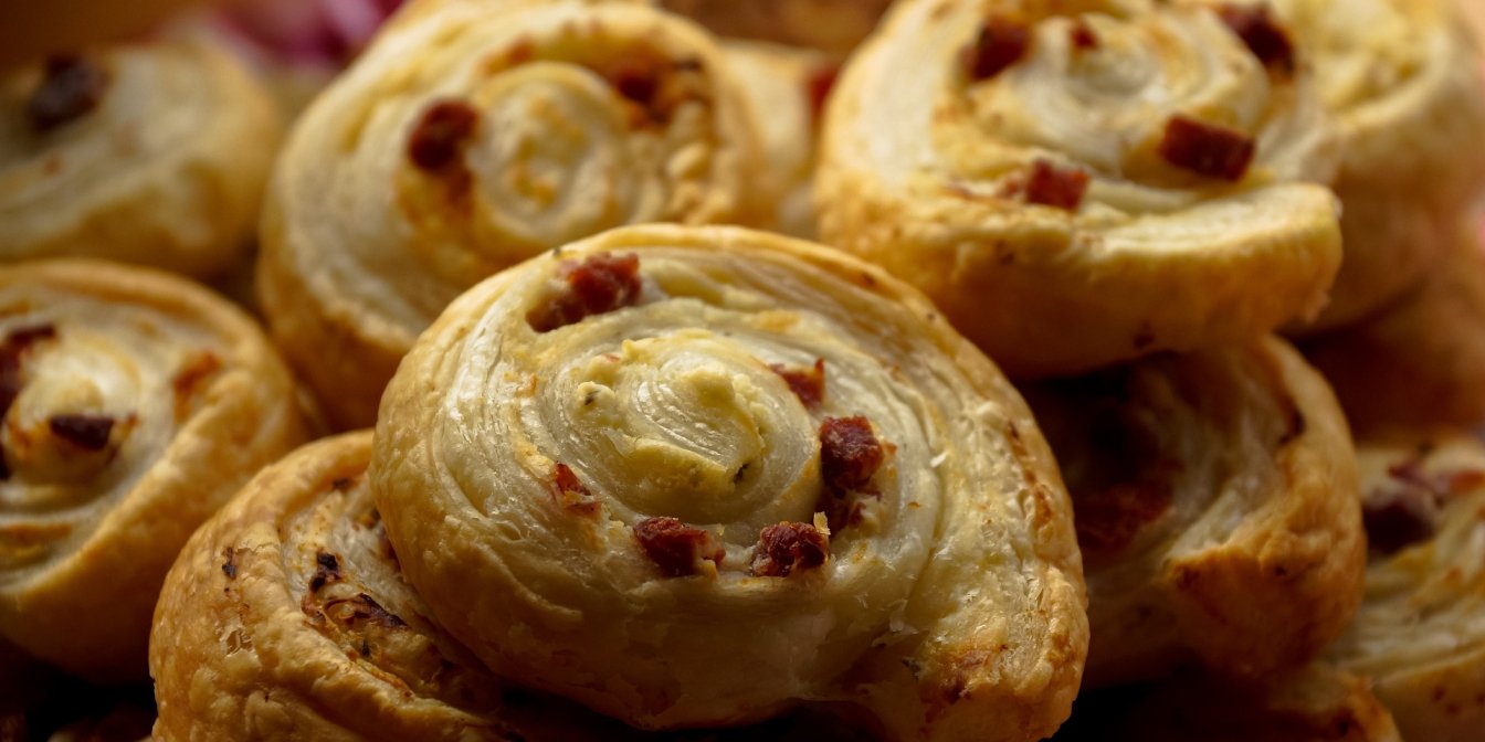 На закуску: рулетики з листкового тіста із шинкою