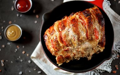 Запечений свинячий ошийок, фарширований соковитою сумішшю солодкого перцю з цибулею, — це вишукано і смачно! Для збереження смаку важливо, щоб його вийняли з духовки безпосередньо перед подачею.