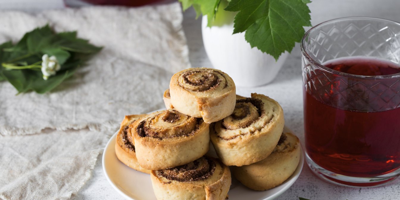 Деко застеліть пергаментом, змастіть його маслом і викладіть рулетики на невеликій відстані один від одного. Випікайте у розігрітій до 180°C духовці 20-25 хвилин. Готові рулетики посипте цукровою пудрою.