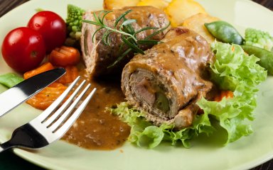 Ці крученики з телятини з начинкою — проста у приготуванні страва з оригінальним і смачним результатом. У цьому рецепті хрусткі огірочки дуже добре поєднуються з м’якістю м’яса. Нарешті, соус на основі гірчиці надає страві аромат, що підсилює кінцевий смак.