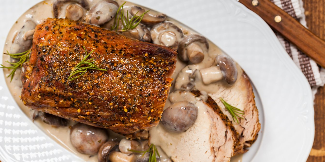 Перед подачею зніміть нитки й наріжте м’ясо скибочками.