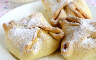 У цьому десерті поєднується медово-солодкий смак фруктів і хрустке пісочне тісто. Такі мішечки дуже люблять діти, тож можна залучити їх до готування.