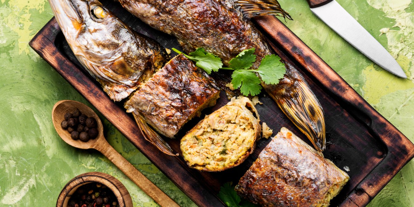 Фарширована щука — це улюблена класика для багатьох. Пропонуємо осучаснити рецепт, змінивши начинку на кускус і присмачивши рибу соєвим соусом. Щука, фарширована кускусом і овочами — ваша знахідка на свято.