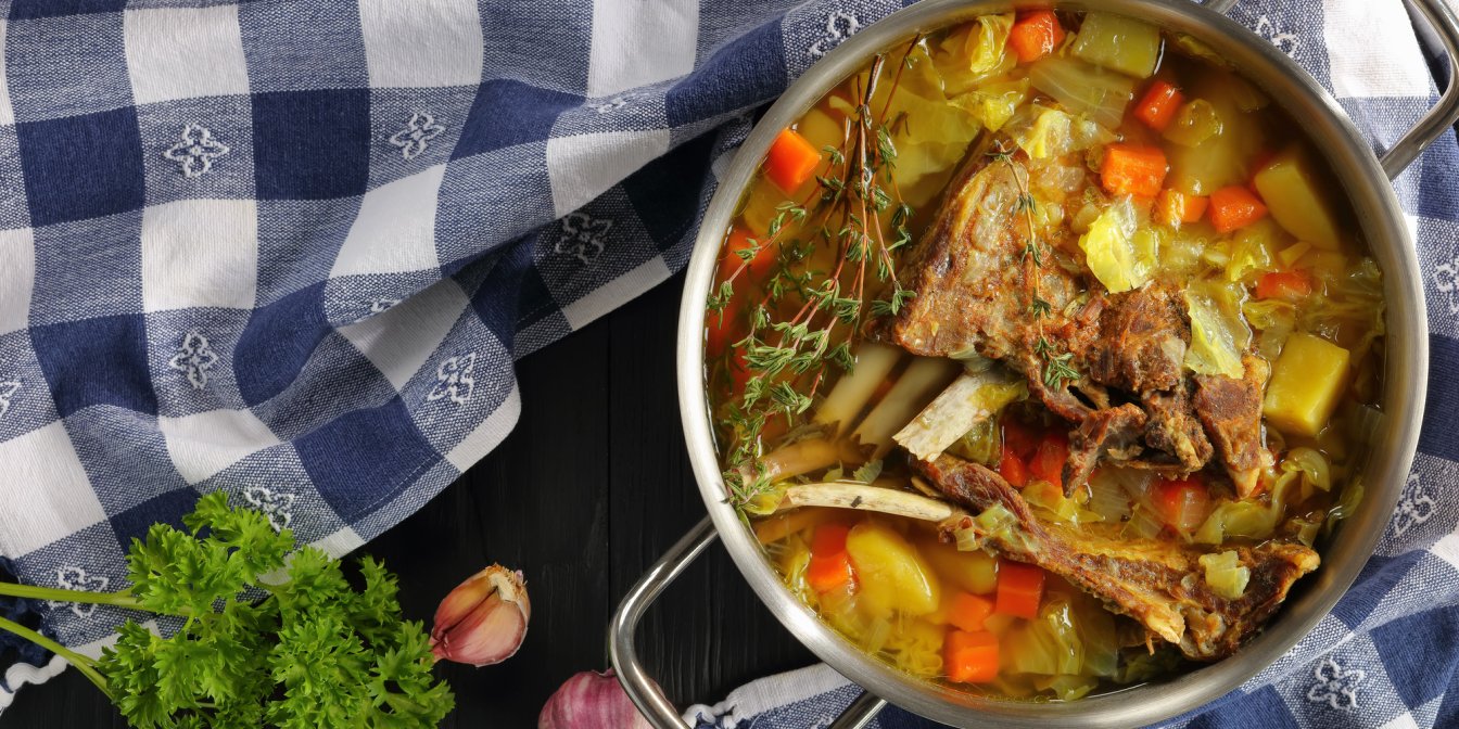 Баранина має бути обовʼязково на кістці й може складатися з товстих відбивних або лопатки. Капуста, бруква і морква надають супові яскравого смаку й кольору, а цвітна капуста і картопля — приємну текстуру. Цей суп можна варити рідким або трохи загустити крупою, традиційно — вівсяними пластівцями чи рисом, як у рецепті.