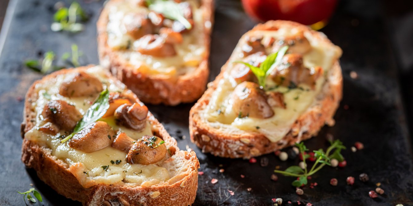 Наша піцета з грибами та сиром — це спрощена версія для тих, хто поспішає. Тому замість коржиків із тіста ми використаємо скибки батона, а ось у наповненні не будемо себе обмежувати: печериці, помідори, моцарела та щіпка італійських трав — те, що нам знадобиться у цьому рецепті.