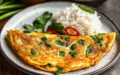 Kai jeow — це класичний тайський омлет з ідеальним балансом солоно-солодко-гострого смаку. Подавайте просто так або з рисом і свіжими овочами, щоб швидко і ситно поїсти.