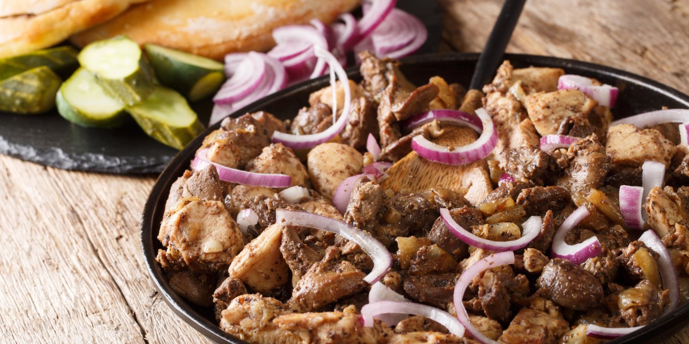 Куряча печінка із солоними огірками