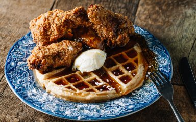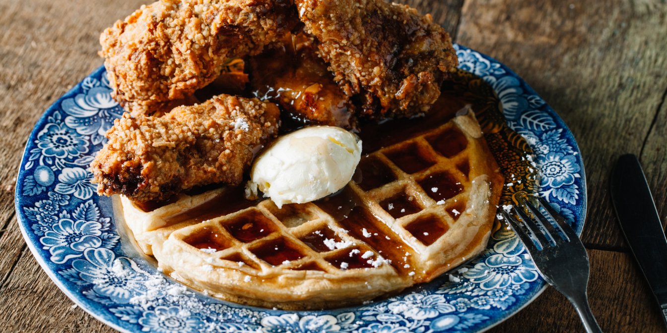 Курка та вафлі — культова американська страва з ідеальним смаковим поєднанням солодкого з сіллю та спеціями. Хрустка текстура смаженої курки ідеально поєднується з м’якими пухкими вафлями. Їх можна просто полити кленовим сиропом або медом до липкої солодкості.