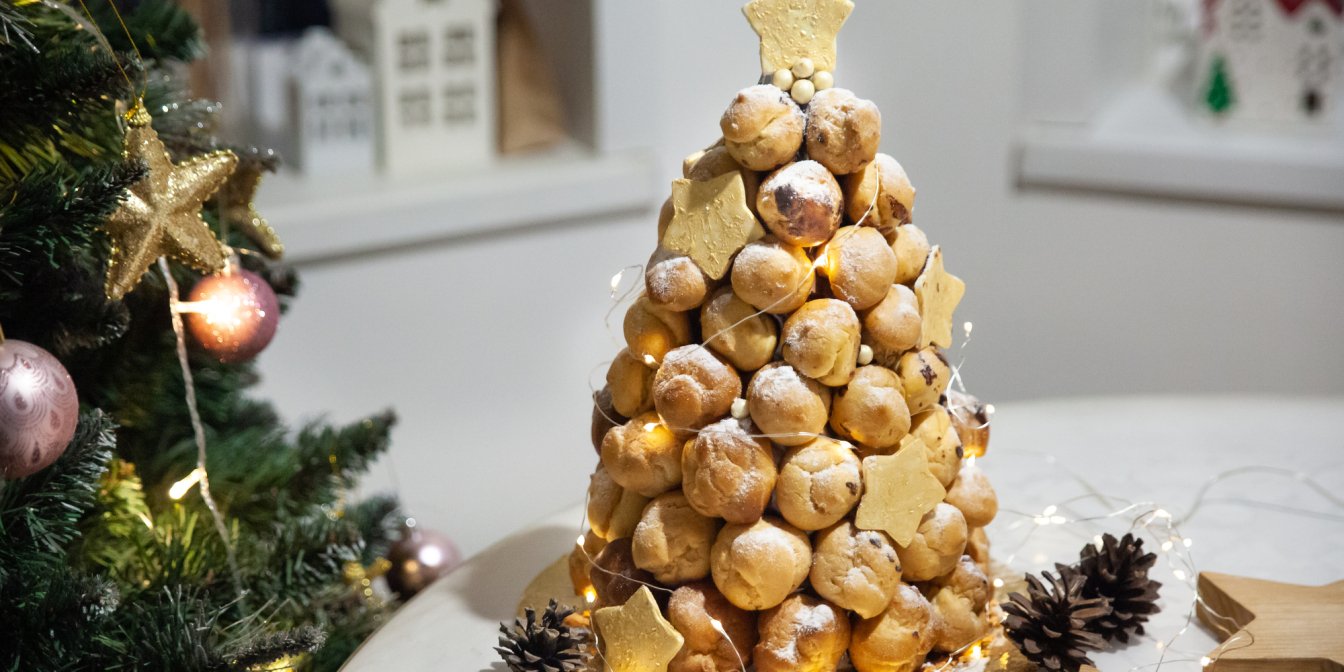 Крокембуш — це башта із заварних тістечок, зʼєднаних карамеллю або кремом. Спочатку цей ефектний десерт подавали лише на столи аристократів, потім на французьких весіллях чи хрестинах. Українці можуть приготувати цей десерт на зимові свята.