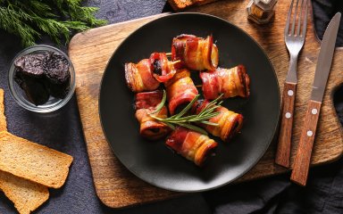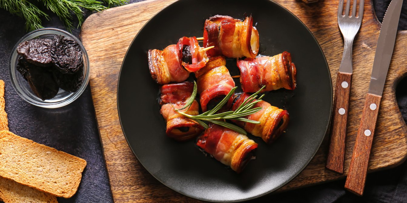 Закуска із чорносливу в беконі — те, що треба, якщо забракло часу, але є бажання вразити гостей креативною стравою.