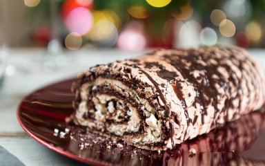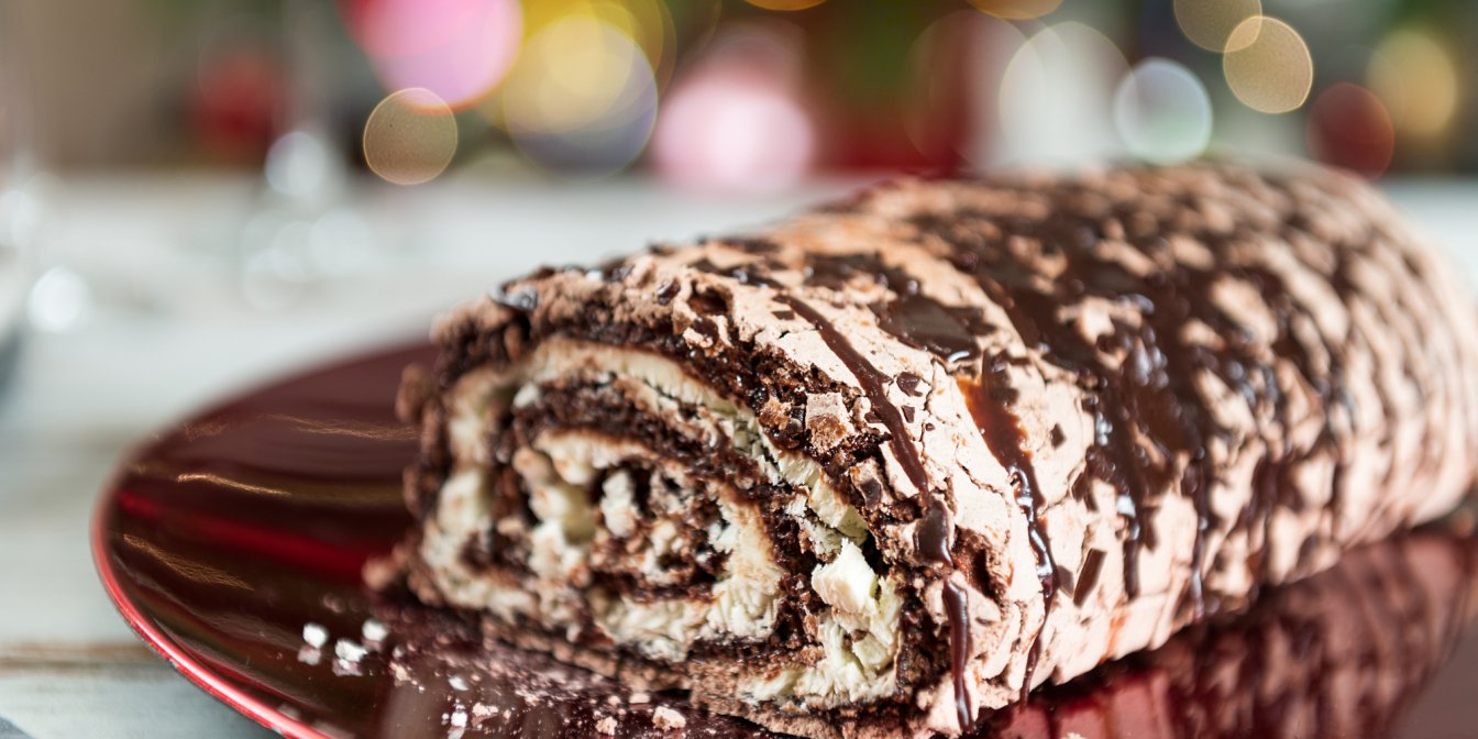 Смачний меренговий рулет ідеально підійде для солодкого столу на Різдво. Його можна подавати як з гарячим чаєм, так і з хмільним