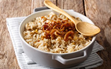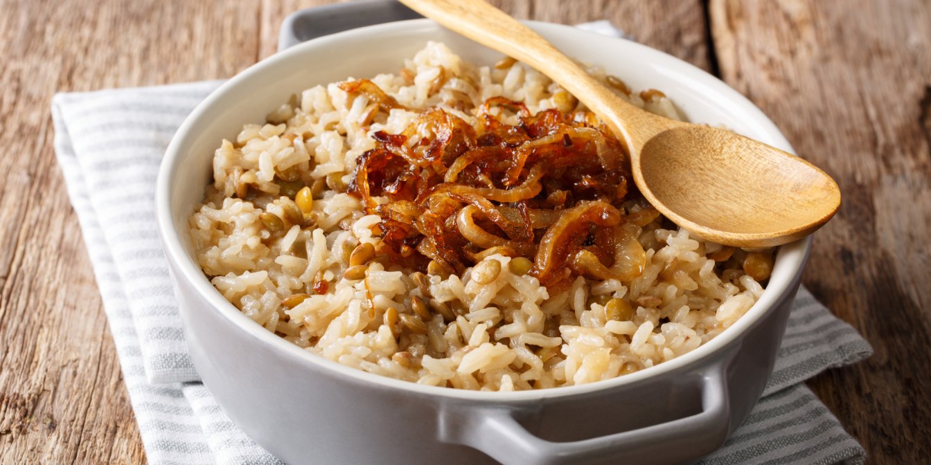 Муджадара — це смачна суміш сочевиці, рису і смаженої цибулі, приправлена спеціями. Чудова комфортна їжа для холодних вечорів.