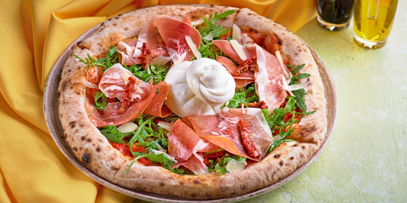Ця італійська піца об’єднує перевірені часом поєднання смаків: ароматний свіжий базилік; солодкий томатний соус, солоний, насичений прошуто й вершкову бурату.