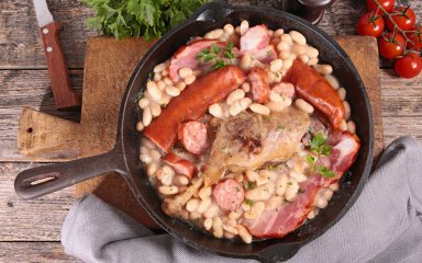 Ми не жартуємо! Щоб приготувати це м’ясне асорті з квасолею, вам знадобляться яловичина, копчена свиняча грудинка і ковбаса, а щоб страва не складалася з одного лише білка, додамо трохи клітковини і вуглеводів: квасолю, цибулю і томатну пасту.