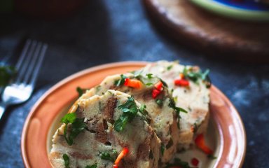 з води, дати охолонути й зняти фольгу. Нарізати на тонкі порції. Подавати з улюбленим соусом.
