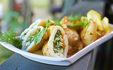 Закуска має бути вишуканою, тонко передавати настрій святкового столу, смакові вподобання чи просто бути сміливим експериментом, які ці фаршировані крабовими паличками кальмари.