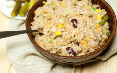 Не буде великим перебільшенням сказати, що каша була першою стравою, яку навчилася готувати людина. Повторімо шлях предків і приготуймо осучаснену кашу з пшеничної крупи, цибулі, консервованої кукурудзи й томатної пасти.