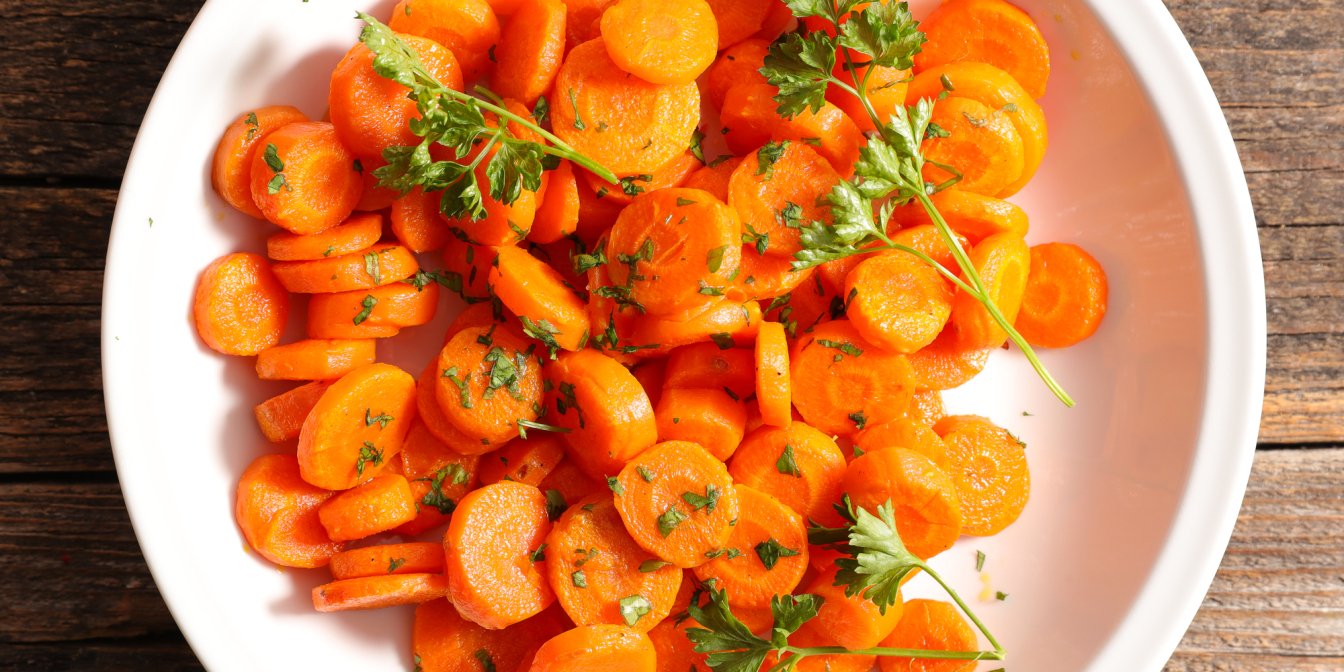 У каструлі середнього розміру доведіть воду до кипіння, додайте скибочки моркви та дрібку солі. Варіть їх на середньому вогні 7-8 хвилин. Скибочки моркви повинні бути ще твердими, але готовими. Злийте воду з моркви і відкладіть її в миску.
