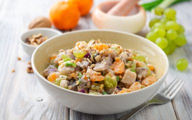 Салат з мандаринами, яблуками й грибами — це легка й корисна страва, чудова як гарнір до м’яса або легкий перекус на роботу. Ви також можете спробувати салат з куркою, мандаринами й гранатом.