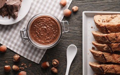 Це легша і натуральніша версія магазинної горіхової пасти, яка пасує для веганів і вегетаріанців. У готових варіантах можна зустріти суху молочну сироватку чи мед, у нашій же версії є тільки фундук, темний шоколад (шукайте веганський!), цукор, соєве молоко і олія.
