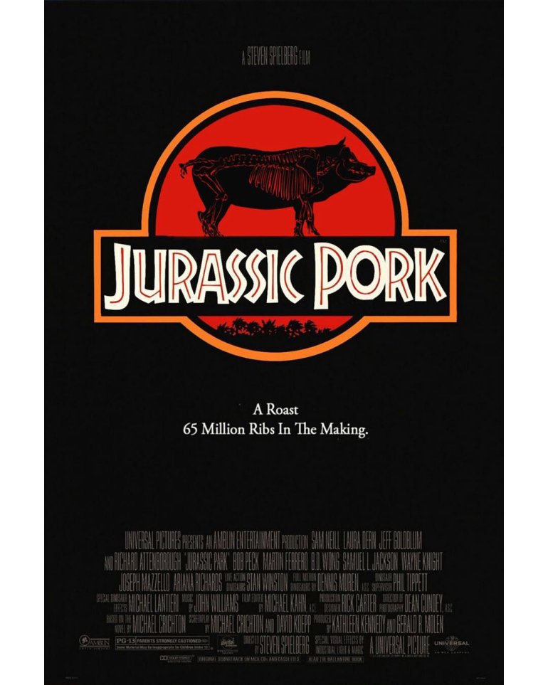 Jurassic Park — Jurassic Pork («Парк Юрського періоду» та «Свинина Юрського періоду»);