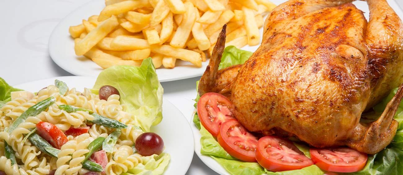 Це соковита курка, виготовлена на грилі. Її традиційно подають із картоплею фрі та салатами. Курку часто маринують в особливому складі з оцту, солі, перцю, розмарину, чилі й темного пива.